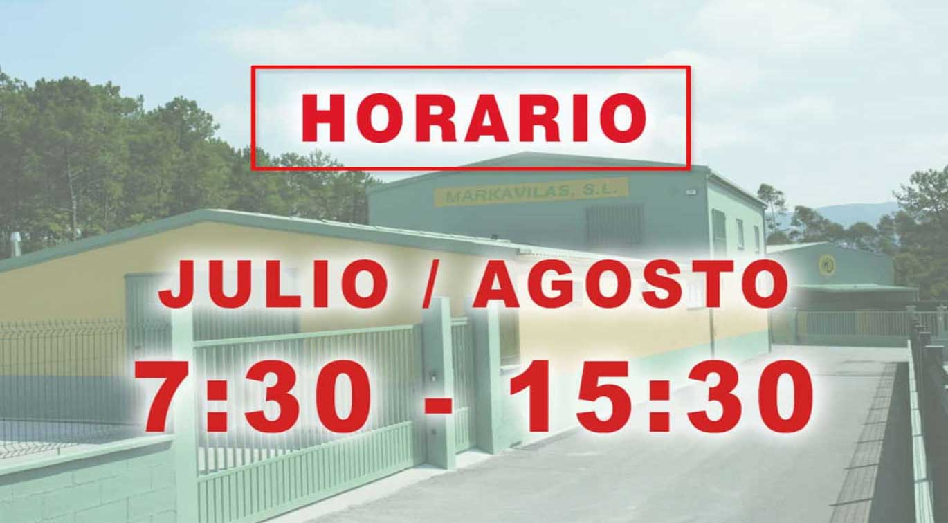 📢 Cambio en el Horario Comercial para Julio y Agosto Estimados clientes y colaboradores, Queremos informarles que, Markavilas, S.L. modificará su horario comercial durante los meses de julio y agosto. A continuación, detallamos los cambios: Nuestro equipo estará disponible para atender sus consultas y pedidos en el horario mencionado ¡Agradecemos su comprensión!